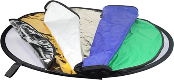 Univerzálna sada na prácu so svetlom: skladacia fotografická blenda 7 v 1 s priemerom 60 cm s integrovaným difúzorom. Ponúka plochy zlatá, strieborná, biela, čierna, modrá, zelená a difúzna na dokonalú kontrolu odrazov, teploty aj rovnomernosti svetla v štúdiu aj v exteriéri. Ľahká, skladná a odolná – ideálna pre profesionálov aj začiatočníkov.