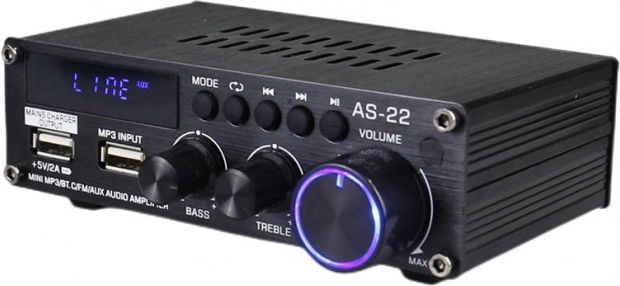 Kompaktný zvukový zosilňovač BLITZWOLF AS-22 ponúka výkon 2 × 45 W RMS, moderné Bluetooth 5.0 pre stabilné bezdrôtové pripojenie do 5 m, bohaté možnosti vstupov (USB, RCA, AUX 3,5 mm) a pohodlné ovládanie cez diaľkový ovládač aj predný panel. Vychutnajte si čistý stereo zvuk, nastavte si basy a výšky presne podľa seba a počúvajte aj FM rádio.