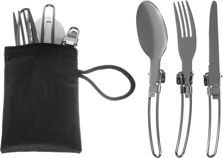 Sada zahŕňa príbory, skladacie poháriky aj karabíny – ideálne na túry, kemp aj pikniky.