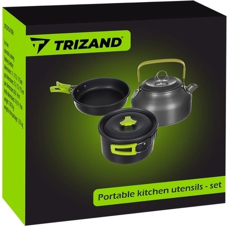 - Kompletná výbava – hrniec, panvica, kanvička s viečkom, univerzálna pokrievka, 2× nôž, 2× vidlička, 2× lyžica, 2× karabína, 2× skladací pohárik, 2× puzdro na príbory, transportný vrecúšok.
