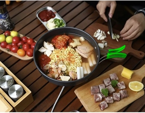 Táto univerzálna 18-dielna sada kempingového riadu kombinuje nízku hmotnosť, odolné materiály a skvelú skladnosť. Vďaka nepriľnavej vrstve pripravíte jedlo ľahko a bez pripálenia, skladacie rukoväte zaistia bezpečný úchop a jednoduché prenášanie.
