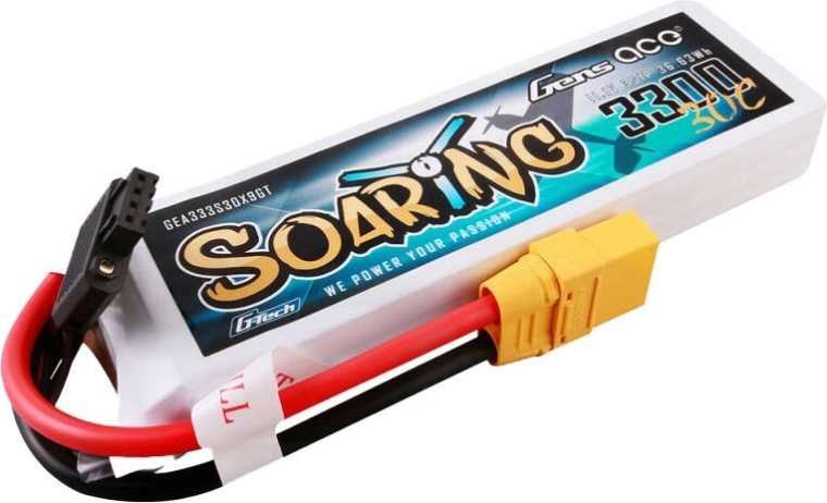 Gens Ace G-Tech Soaring s konektorom XT90 je špecializovaný zdroj energie určený na použitie v lietajúcich modeloch, ako sú drony, multirotory a bezpilotné lietadlá. LiPo akumulátor s kapacitou 3300 mAh a napätím 11,1 V poskytuje vynikajúci výkon a dlhú prevádzku, čo je dôležité pre aplikácie vyžadujúce stabilné a neprerušované napájanie. Vybijací prúd 30C zaručuje rýchle dodanie potrebného výkonu. Akumulátor váži 252 g a má rozmery 131 × 42,5 × 19,5 mm, čo umožňuje jeho jednoduchú inštaláciu do rôznych lietajúcich modelov. Konektor XT90 zaisťuje bezpečné a spoľahlivé pripojenie, zatiaľ čo vyvažovací konektor JST-XH pomáha udržiavať články rovnomerne nabité. Je ideálnou voľbou pre modely ako Easy Glider, Fun Cub a E-flite.