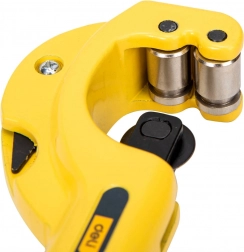 Nastaviteľný mechanizmus s rezným kotúčom umožňuje presné a čisté delenie rúr bez stláčania materiálu. Ideálne na inštalatérske práce, kde je dôležitá kvalita a opakovateľnosť rezu.
