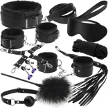 Sada obsahuje všetko potrebné pre rôzne typy BDSM hier, od jemného dráždenia až po zmyselné zápasy.
