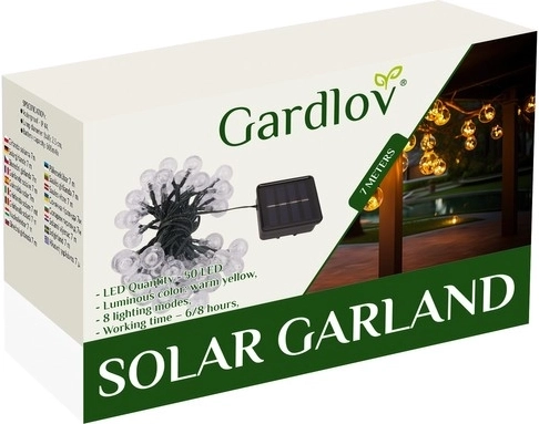 Obohaťte svoju záhradu o elegantný solárny svetelný veniec s celkovou dĺžkou 7 metrov. Tento inovatívny produkt sa skladá z 50 gúľ vyrobených z vysoko kvalitného polystyrénu. Materiál je odolný a estetický, zdobí váš priestor aj bez osvetlenia. Každá guľa je inšpirovaná dizajnom drobných bublín, ktoré zvyšujú efektivitu a takisto krásu svetla.