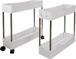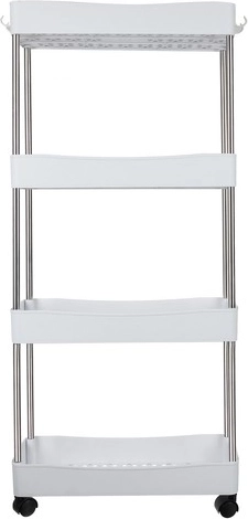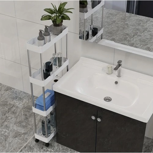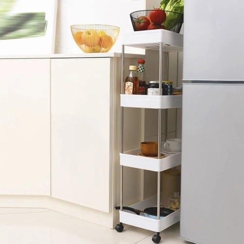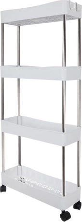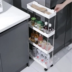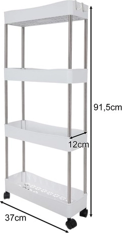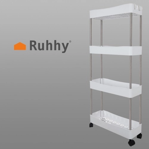 Mobilný policový regál RUHHY je univerzálne riešenie na úsporu miesta v úzkych medzerách aj bežných zónach domácnosti. Vďaka modulárnej konštrukcii si ľahko prispôsobíte počet poschodí podľa potreby a využijete ho v kúpeľni na kozmetiku a čistiace prostriedky, v kuchyni na koreniny a fľaše, v pracovni na dokumenty či v práčovni na detergenty.