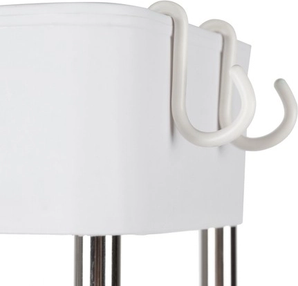 Perforované dno zlepšuje cirkuláciu vzduchu a odvod vlhkosti. Bočné háčiky poskytnú miesto pre uteráky a drobné doplnky.