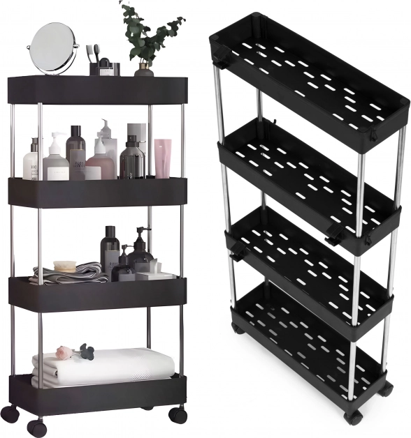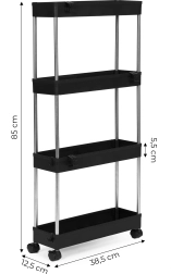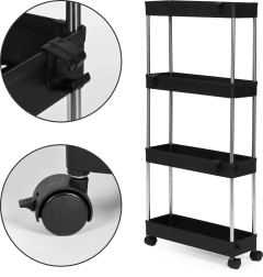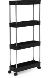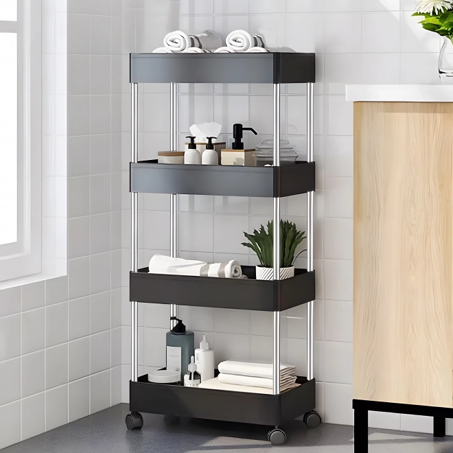 Udržte si poriadok aj v úzkych priestoroch. Tento úzky plastový regál ModernHome ponúka veľkorysý úložný priestor na 4 policiach pre kozmetiku, uteráky, čistiace prostriedky či potraviny. Vďaka štíhlemu profilu sa skvele zmestí medzi skrinky, práčku alebo vedľa sprchovacieho kúta.