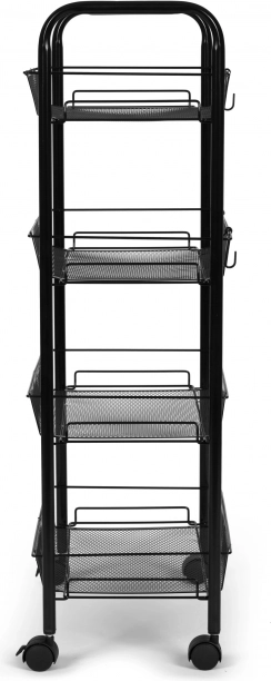 Praktický a štýlový regál ModernHome premení úzke aj nevyužité priestory na inteligentné úložisko. Ponúka 4 priestranné košové police, stabilnú kovovú konštrukciu a 4 kolieska (2 s brzdou) na jednoduché presúvanie. Ideálny do kuchyne, kúpeľne, obývačky aj kancelárie, so 4 háčikmi na drobnosti a doplnky.