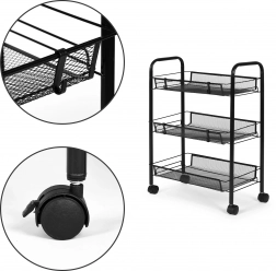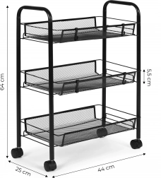 Praktický a štýlový pomocník pre každý domov. Úzke proporcie regálu umožnia využiť aj menej dostupné miesta, zatiaľ čo tri priestranné košíkové police pojmú kozmetiku, čistiace prostriedky, koreniny, riad či kancelárske potreby. Odolný kov zaručuje stabilitu a dlhú životnosť.