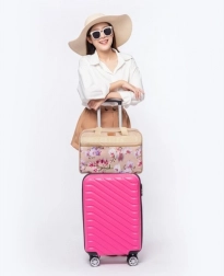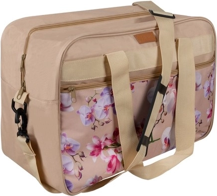 Táto štýlová béžová taška s kvetinovým vzorom je ideálna ako príručná batožina do lietadla. Vďaka kompaktným rozmerom 40 × 20 × 30 cm bez problémov prejde kontrolou, pritom ponúkne 24 litrov priestoru pre všetko potrebné. Odolná a vodoodolná tkanina chráni obsah pred dažďom aj nečistotami a pevné zipsy sa postarajú o dlhú životnosť.