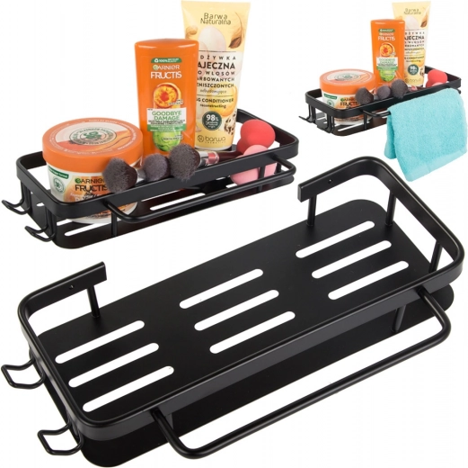 Táto čierna kovová polica je skvelým riešením pre usporiadanie domácnosti. Jej minimalistický loftový vzhľad pridá každému priestoru nádych elegancie. Inštaluje sa jednoducho pomocou samolepiacich háčikov, ktoré minimalizujú potrebu vŕtania. Je vhodná ako pre kúpeľňové, tak kuchynské úlohy.