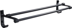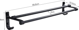 Elegantný dvojitý držiak na uteráky je ideálnou voľbou pre moderné aj klasické kúpeľne. Dve rovnobežné tyče poskytujú dostatok priestoru na sušenie a organizáciu uterákov, zatiaľ čo bočné háčiky pridávajú ďalšie miesto pre doplnky. Odolná kovová konštrukcia v čiernom prevedení zabezpečuje dlhú životnosť a jednoduchú údržbu.