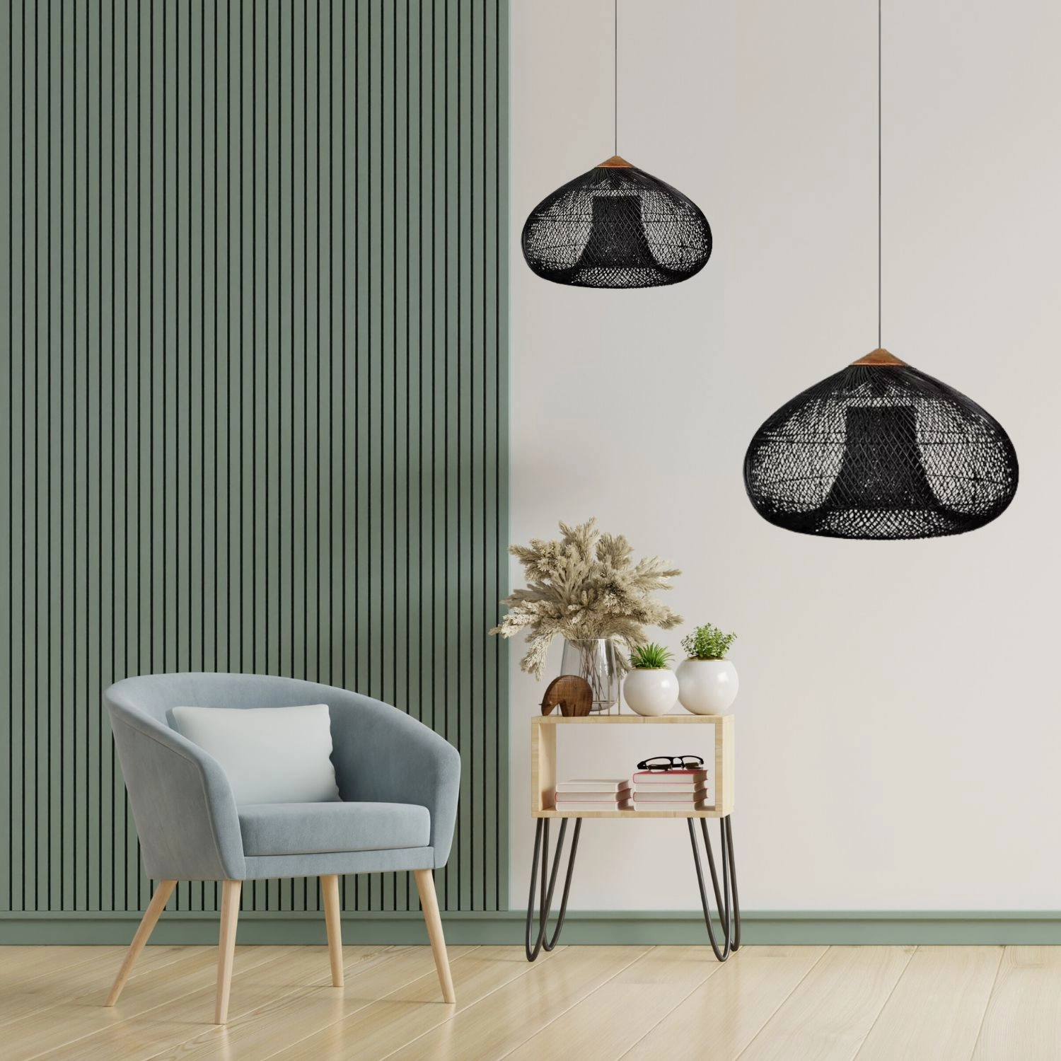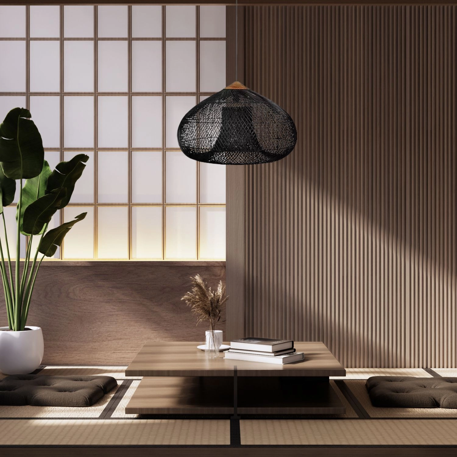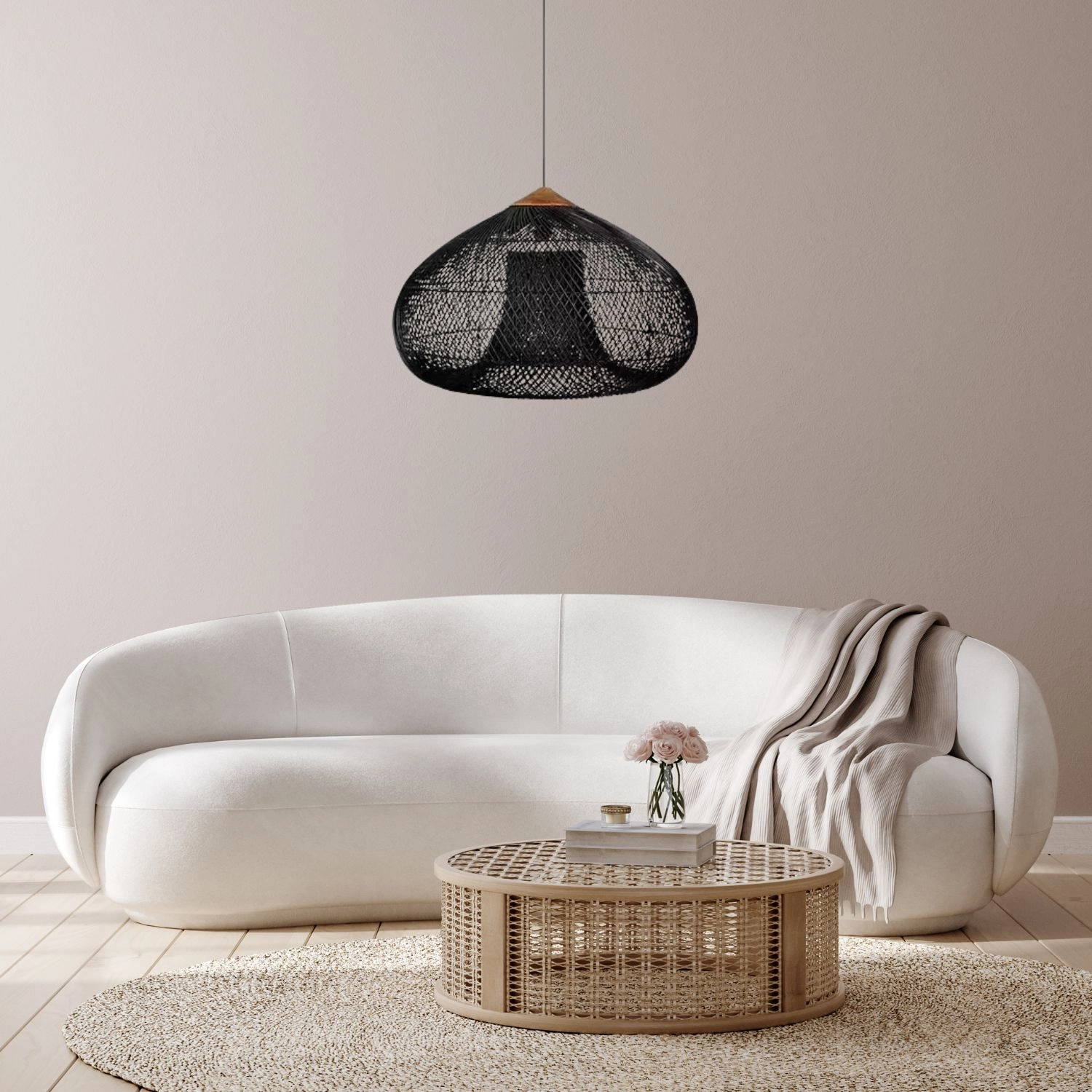 Toto čierne ratanové svietidlo prepája prírodné materiály s moderným dizajnom. Ručne prepletené tienidlo vytvára teplé, útulné svetlo a skvele funguje v obývačke, jedálni aj spálni. Vďaka univerzálnemu vzhľadu sa ľahko kombinuje s minimalistickým, škandinávskym aj boho štýlom.
