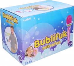 Zábavná hračka pre deti od 3 rokov, bublifuk v tvare mikrofónu poskytuje dostatok tekutiny na bublinovú zábavu vďaka objemu 70 ml. Je dostupný v dvoch farebných variantoch – modrej a ružovej.