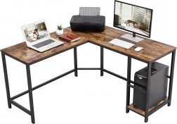 Tento rohový počítačový stôl prináša šikovné využitie priestoru aj elegantný industriálny vzhľad. Ponúka dosť miesta na monitor, notebook, tlačiareň aj príslušenstvo, zatiaľ čo oceľový rám a kvalitná doska v rustikálnej hnedej zaručujú dlhú životnosť. Vďaka nastaviteľným nožičkám ľahko vyrovnáte nerovnosti podlahy a udržíte stabilitu pri práci.
