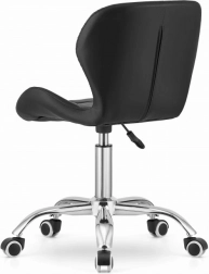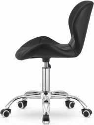 Táto moderná kancelárska stolička skvele zapadne do detskej izby, ateliéru, kancelárie aj recepcie. Čalúnenie z odolnej eko kože s decentným prešívaním pôsobí elegantne, ľahko sa čistí a dlhodobo si zachováva vzhľad. Päťramenný chrómovaný kríž s pogumovanými kolieskami zabezpečuje stabilitu a šetrný, tichý pojazd po podlahe.