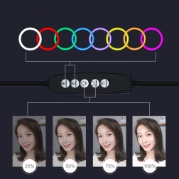 Kruhová lampa s výkonom 15 W ponúka farebné režimy RGB aj prirodzenú bielu. Pomocou ovládača na kábli rýchlo prepnete farbu, upravíte jas a zapnete/vypnete svetlo.