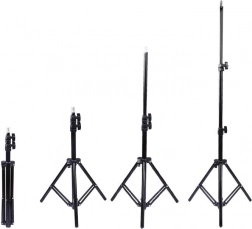 Skladací statív má výšku 49,5–110 cm, takže sa ľahko prispôsobí práci pri stole aj natáčaniu v stoji. V balení nájdete LED lampu, statív a kábel s ovládaním – všetko pripravené na okamžité použitie.