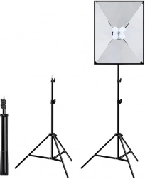- Štúdiový statív, softbox 50 × 70 cm s držiakom žiaroviek, 4× LED E27 20 W, prepravná taška