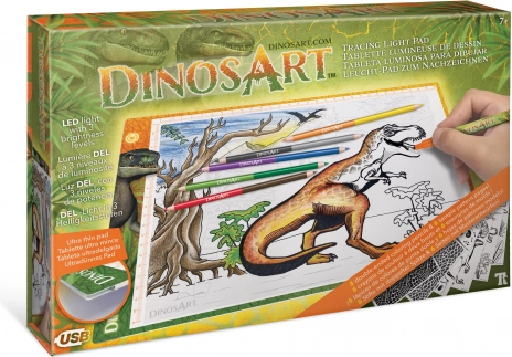 Tablet na kreslenie DinosArt je ideálny nástroj pre každého malého umelca. Vďaka LED svetlu s 3 úrovňami jasu a ultratenkej podložke je kreslenie jednoduché a zábavné.
