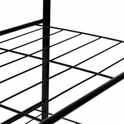 Pevný čierny rám zabezpečuje dlhú životnosť a stabilitu aj pri plnom zaťažení. Vzdušné roštové police podporujú cirkuláciu a rýchle vysychanie obuvi.