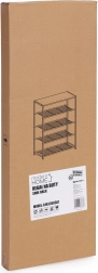 Vneste poriadok a moderný vzhľad do vášho interiéru. Botník LOFT od značky ModernHome ponúka päť praktických úrovní na prehľadné uloženie obuvi a masívnu hornú dosku z MDF v dekore duba na odkladanie drobností. Vzdušné kovové police umožňujú cirkuláciu vzduchu, takže sa topánky lepšie vetrajú a rýchlejšie vysychajú.