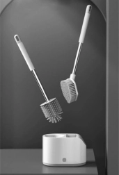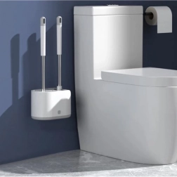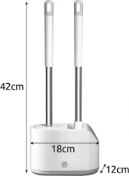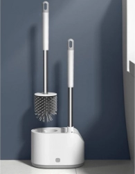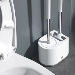 Praktická sada 2 toaletných kefiek RUHHY pre každodennú čistotu a hygienu. Kombinuje okrúhlu hlavicu z TPR na šetrné čistenie a plochú špicatú hlavicu na rohy a okraje. Vďaka odkvapkávacej nádobke s tlačidlom a nástennému držiaku šetrí miesto a udržiava kúpeľňu v suchu. Odolné materiály PP, nehrdzavejúca oceľ, TPR a PS zaručujú dlhú životnosť.