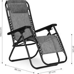 Užite si pohodlie kdekoľvek na záhrade, terase aj pri vode vďaka tomuto polohovaciemu kreslu so systémom zero gravity. Ponúka oceľový rám, nosnosť 120 kg, skladaciu konštrukciu, pohodlnú opierku hlavy a vodopriepustnú, rýchloschnúcu tkaninu s protišmykovými pätkami na bezpečné používanie.
