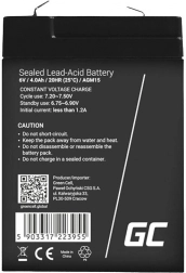 Batéria Green Cell AGM 6V/4Ah je ideálnym riešením pre tých, ktorí hľadajú spoľahlivý zdroj energie pre zabezpečovacie systémy, pokladne a hračky. Bezúdržbový prevádzka zaručuje ľahké použitie a dlhú životnosť.