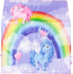 Vytvorte deťom ich vlastné útočisko pre fantáziu a zábavu. Hrací stan IPLAY s motívom dúhy a jednorožcov ponúka pohodlné a súkromné miesto na čítanie, hranie aj oddych. Vďaka ľahkej a stabilnej konštrukcii ho ľahko postavíte v obývačke, detskej izbe alebo na terase.