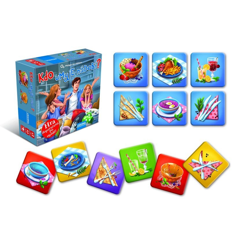 Granna Kto umyje nádobí? je svižná a zábavná hra na postreh, ktorá vám pomôže rozhodnúť, kto bude umývať nádobie po obede! Cieľom hry je zbaviť sa čo najrýchlejšie kariet so špinavým nádobím.