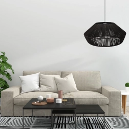Elegantné závesné svietidlo z prírodného ratanu a ocele v čiernej farbe dodá interiéru útulnú atmosféru a moderný akcent. Priemer 50 cm, ideálne pre miestnosti 10–15 m². Kompatibilné so zdrojom E27, úsporná prevádzka s odporúčaným výkonom 12 W, jednoduchá inštalácia a odolné materiály pre dlhú životnosť.