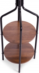 Horná časť obsahuje štyri ramená, ktoré poskytujú 8 miest na zavesenie odevov. Spodná časť je vybavená dvoma funkčnými policami v rustikálnom hnedom prevedení. Konštrukcia je vyrobená z práškovaného kovu a základňa zo 4 rozšírených nôžok, ktoré zabezpečujú stabilitu aj pri veľkom zaťažení. Každá nožka je zakončená podložkou, ktorá chráni vašu podlahu pred poškriabaním.
