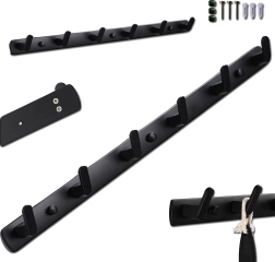Tento čierny nástenný vešiak kombinuje estetiku s praktickosťou. Je vyrobený z robustných materiálov, ktoré zabezpečujú jeho dlhú životnosť. Elegantný dizajn a čierny povrch dodávajú vešiaku moderný vzhľad, a jednoduchá montáž umožňuje rýchle a efektívne využitie priestoru.