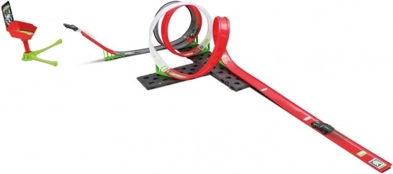 Súčasťou sady je odolné pull-back autíčko (natiahni a choď), ktoré zvládne dojazd až 25 metrov. Dráha je vyrobená z pevného plastu, ktorý odolá akčnej hre a častému skladaniu. Celý set je balený v praktickej krabičke a vhodný ako darček pre malých milovníkov rýchlosti.