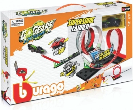 Závodná dráha Bburago GoGears Extreme SuperSonic Launch 3v1 ponúka deťom možnosť zažiť dych vyrážajúce kaskadérske jazdy. Prejdite niekoľkými loopinkami, naberte rýchlosť na rovinke a z mostíka sa pokúste presne zasiahnuť cieľ. Vďaka trom možnostiam rozvrhnutia si ľahko prispôsobíte trať štýlu jazdy a priestoru v detskej izbe.