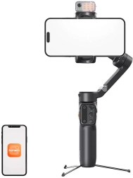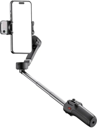 Gimbal je ľahký a jednoducho prenosný vďaka skladaciemu dizajnu. Integrovaná 205mm vysúvateľná tyč umožňuje širší záber a diaľkové ovládanie možno používať samostatne alebo pripevnené, kde sa aj dobíja.