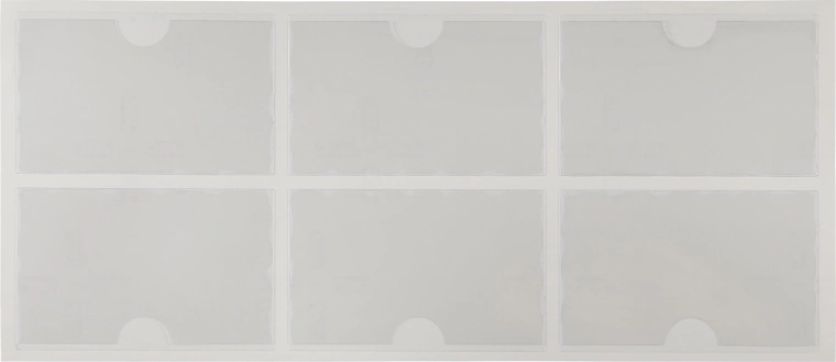 Praktické samolepiace vrecká na vizitky s horným vkladaním chránia vaše karty a štítky, majú zadnú samolepiacu vrstvu na rýchlu inštaláciu na hladké povrchy a sú priehľadné pre perfektnú čitateľnosť. Dodávame na hárku po 6 ks.