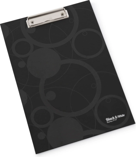 Písacia podložka A4 Black and White je elegantný a funkčný doplnok pre vaše kancelárske potreby, vyrobený z extra pevnej lepenky s kovovým klipom.