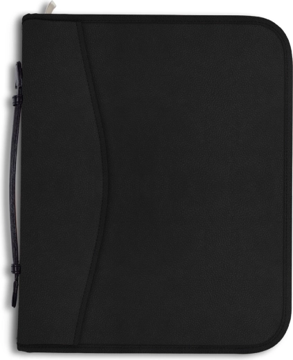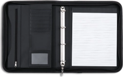 Elegantné konferenčné dosky formátu A4 ATLANTA v matnej čiernej farbe ponúkajú bezpečné uzatváranie na zips, praktickú 4-krúžkovú mechaniku a linajkovaný blok A4. Nechýbajú priehradky na dokumenty a vizitky ani pohodlné ucho na prenášanie.