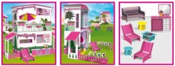 Po zostavení dosahuje vila rozmery 73 × 67 × 22 cm a pohodlne sa do nej zmestí originálna bábika Barbie. Dom je vybavený nábytkom ako šatníková skriňa a pohovka, nechýba ani záhradné príslušenstvo vrátane ležadiel, stolíka a plôtika s kvetmi. Ideálny darček pre malých architektov a milovníkov sveta Barbie.