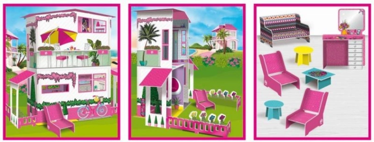 Táto kreatívna sada umožní deťom postaviť si pôsobivý, dvojposchodový domček pre bábiky BARBIE. Konštrukcia z pevnej, kvalitnej lepenky je ľahká, ale stabilná, takže je vhodná na každodenné hranie aj prenášanie. Súčasťou sú detailne spracované prvky interiéru a exteriéru, ktoré podnecujú fantáziu.