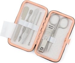 Doprajte si precíznu starostlivosť o nechty kedykoľvek a kdekoľvek s týmto kompaktným a štýlovým manikúrovým setom. Sada je navrhnutá tak, aby sa zmestila do každej kabelky, vďaka čomu je skvelou voľbou pre cestovateľky. Tento elegantný set prináša: