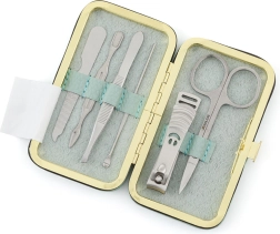 Cestovná manikúrová sada Leather Mint je ideálna pre každú kabelku či cestovné batožinu. Obsahuje 6 nevyhnutných nástrojov pre dokonalú starostlivosť o vaše nechty a pokožku.