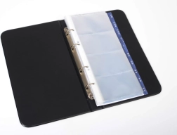 Majte svoje kontakty prehľadne a vždy po ruke. Tento vizitkár A5 ponúka kapacitu až 80 vizitiek a vďaka krúžkovej mechanike môžete listy jednoducho pridávať, odoberať či presúvať. Lesklý povrch pôsobí reprezentatívne v kancelárii aj na cestách.