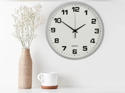 Hodiny sú vybavené tichým mechanizmom, ktorý vás nebude rušiť. Vďaka zabudovanému háčiku je ich montáž veľmi jednoduchá. Fungujú na jednu batériu AA (nie je súčasťou balenia).