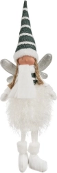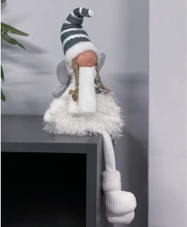 Táto sediaca víla spája útulný zimný štýl a jemný lesk, ktorý rozžiari každý interiér. Vďaka premyslenému tvaru s dlhými nožičkami možno figúrku bezpečne posadiť na okraj poličky, komody, krbu alebo okenného parapetu. Ľahučké a hebké materiály pôsobia príjemne na pohľad aj dotyk, zatiaľ čo strieborné krídla dodávajú dekorácii sviatočný trbliet.