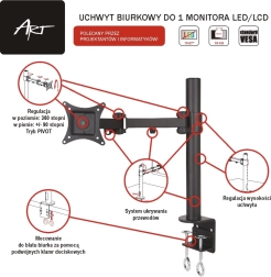Držiak ART L-01 je ideálnou voľbou pre ergonomické pracovisko. Vďaka širokým možnostiam nastavenia ľahko prispôsobíte výšku, náklon aj natočenie obrazovky tak, aby ste znížili únavu očí a krku a zvýšili produktivitu. Robustná konštrukcia zaisťuje stabilitu aj pri častom pre-nastavovaní.