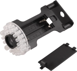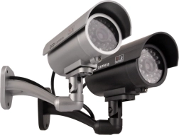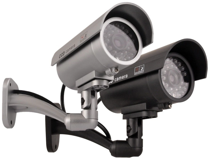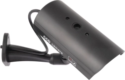 Táto čierna atrapa bezpečnostnej kamery verne napodobňuje vzhľad skutočnej CCTV s označením „CCD camera“. Viditeľné „IR“ LED okolo objektívu a červeno blikajúca kontrolka vytvárajú presvedčivý dojem aktívneho dohľadu, ktorý pomáha odradiť potenciálnych narušiteľov bez nákladov na skutočný kamerový systém.